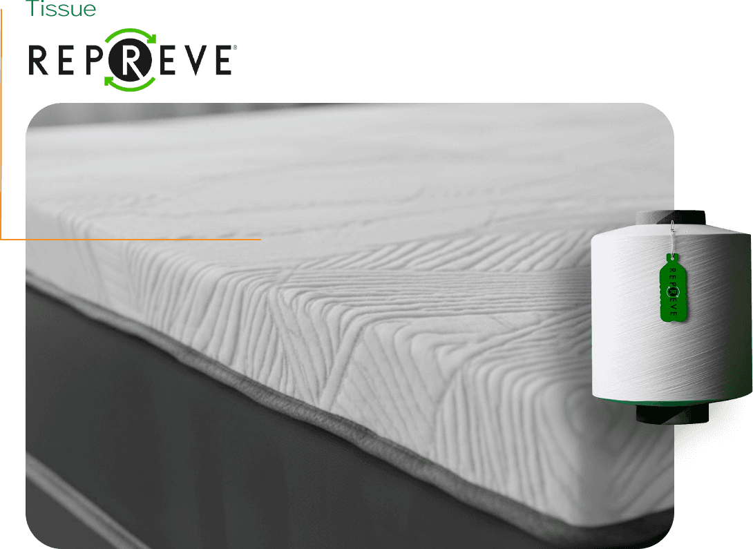 The fabric of ELO⁺ mattresses is made from threads obtained from post-consumer recycled PET bottles (REPREVE).