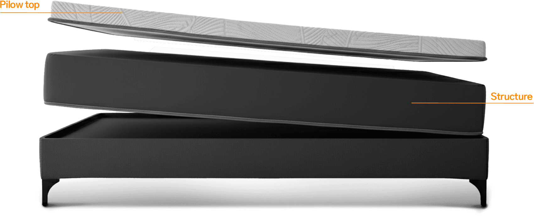 One of the great advantages of the ELO⁺ mattress lies in its intelligent structure: the pillow top (comfort layer) is independent of the mattress structure.